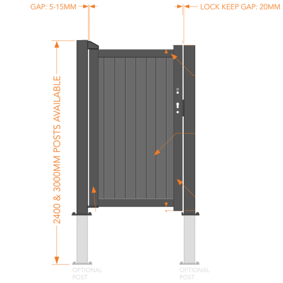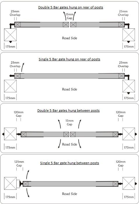 Below are guides for measuring for aluminium gates. When taking your measurements measure at the bottom, middle and top. Take the smallest measurement then use the guide to deduct the allowences this will give you your gate sizes.